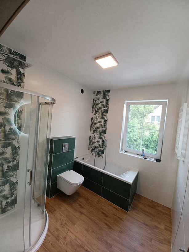 - Układanie płytek – precyzyjny montaż okładzin ceramicznych w łazienkach, kuchniach i innych pomieszczeniach